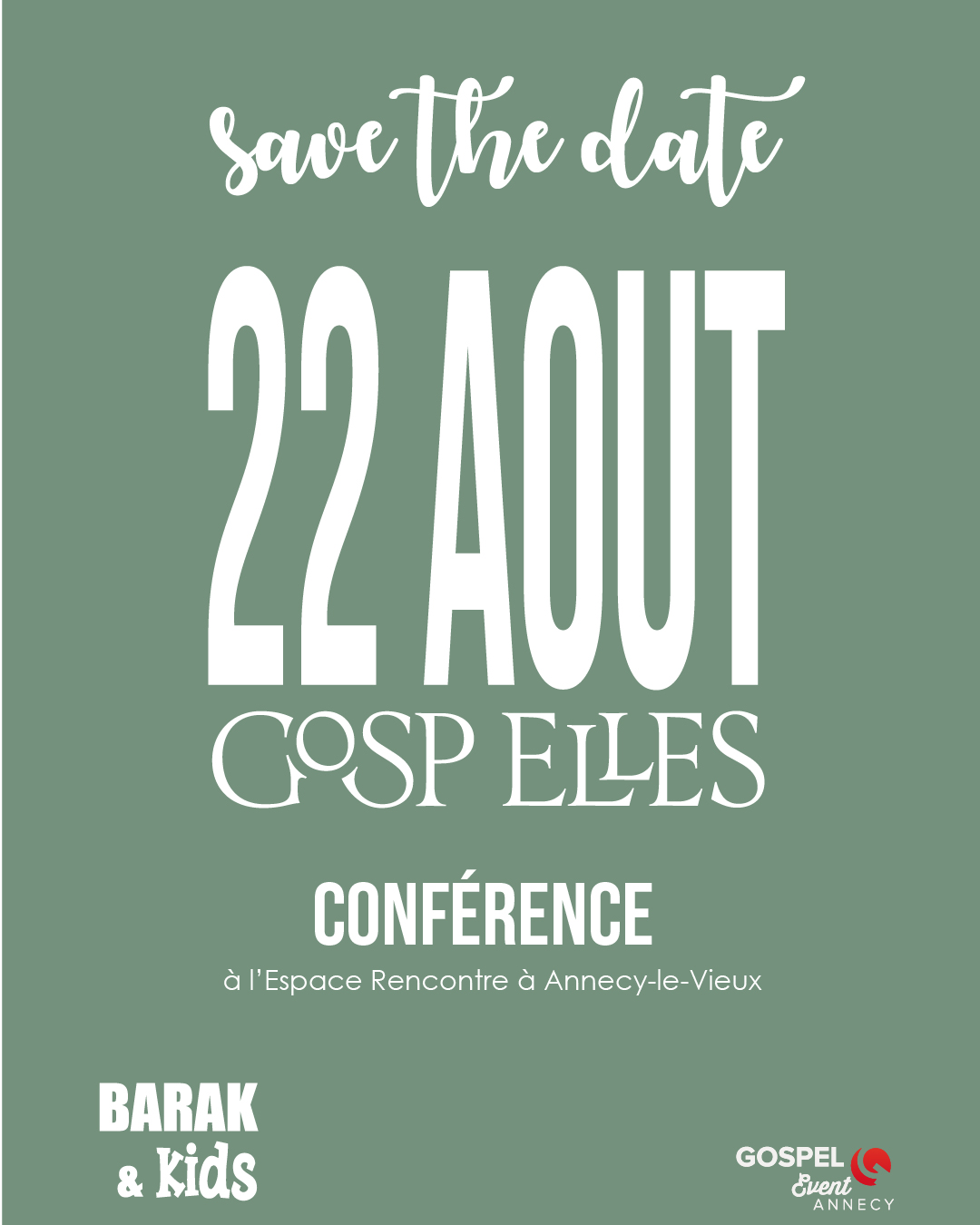 Merci de déjà réserver la date du 22 août pour une conférence spéciale Gosp’Elles, Barak et Kids.