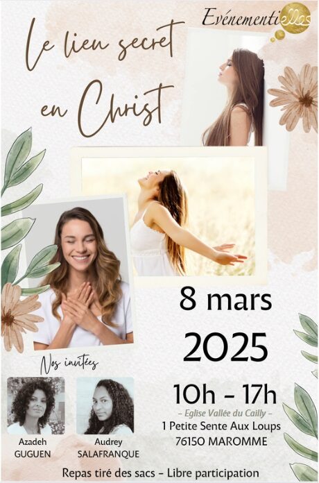 Mai 15 2024 Livry-Gargan. EVENEMENTI’ELLES. Laisse agir Dieu dans ta vie. by Maxime Macé 0 Comments Partager